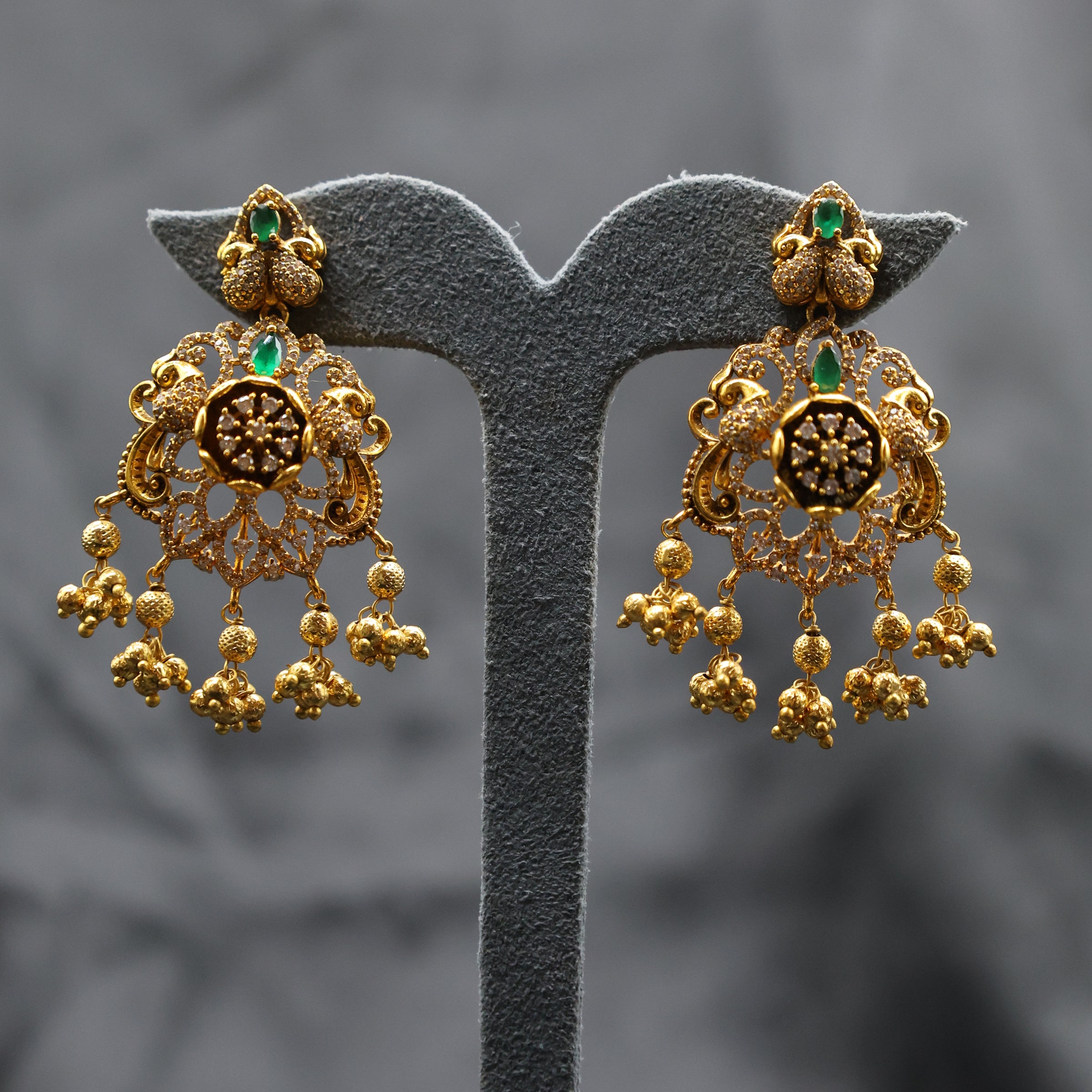 Design: South Indian temple-inspired design with floral and filigree motifs