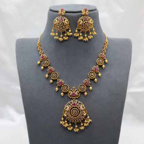Lakshmi Temple Jewellery Necklace Set with Pearl Drops