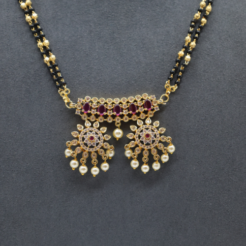 Sunburst Mangalsutra with Ruby & Pearl Drops | Bridal AD Jewelry
