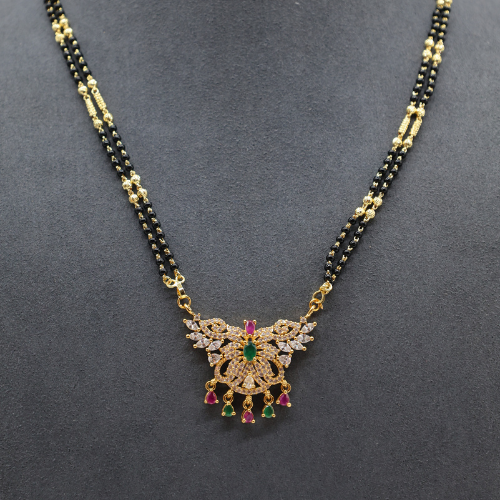 Twin Floral AD Mangalsutra with Multi-Colored Stone Work