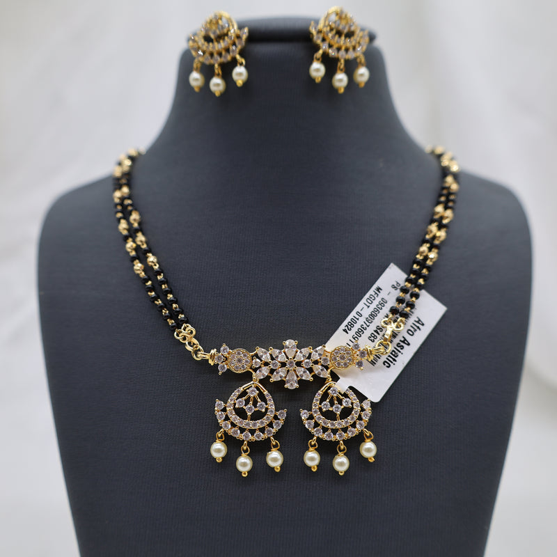 Gold-Toned Floral Mangalsutra Set with Pearls and American Diamonds