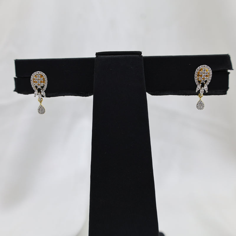 Copper-Brass Mangalsutra Necklace Set with CZ Crescent Design & Teardrop Pendant