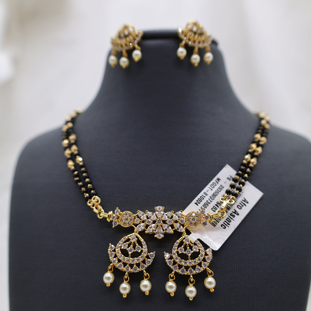 • Design: Floral motif centerpiece with double-strand black beads