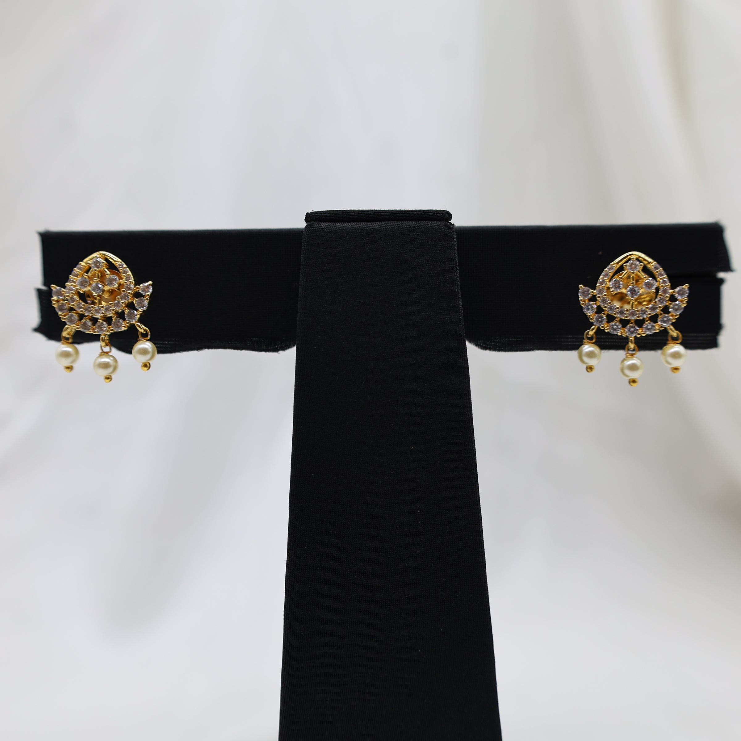 • Pendant: CZ-studded centerpiece with pearl danglers