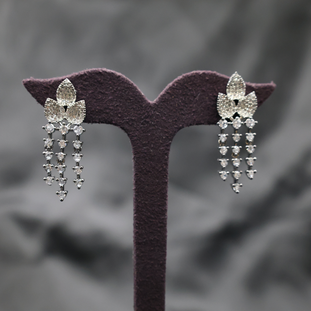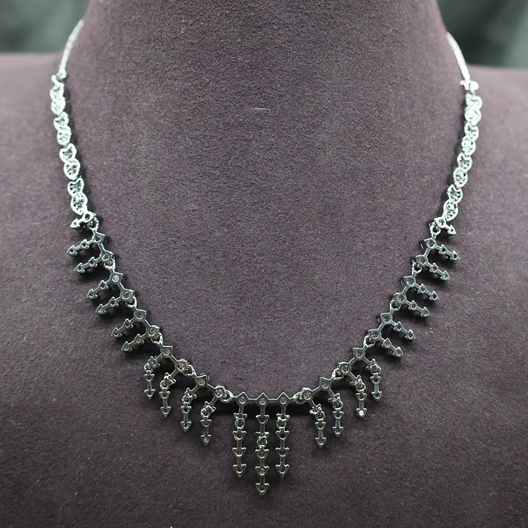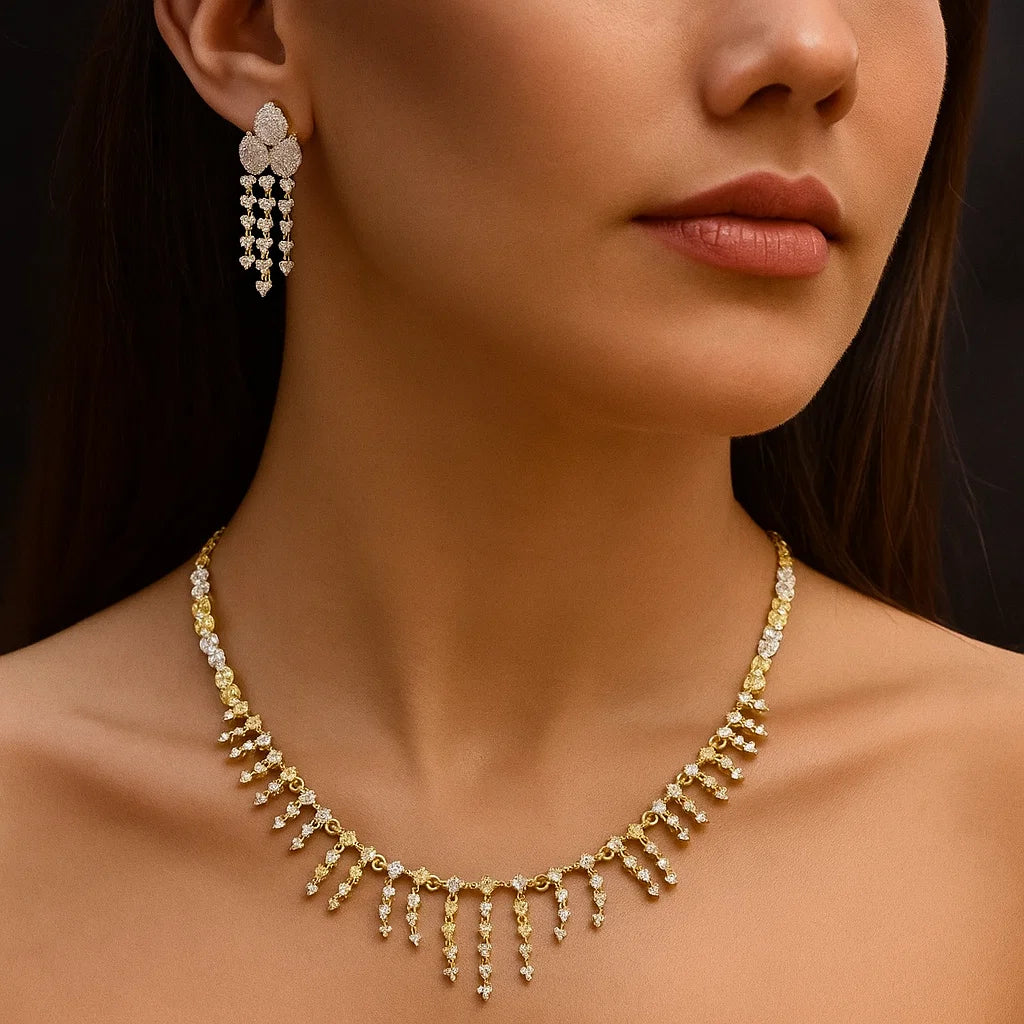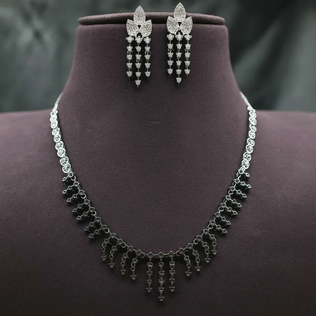 Cascading Drop AD Necklace Set | Elegant Silver-Plated Jewellery for Parties & Weddings
