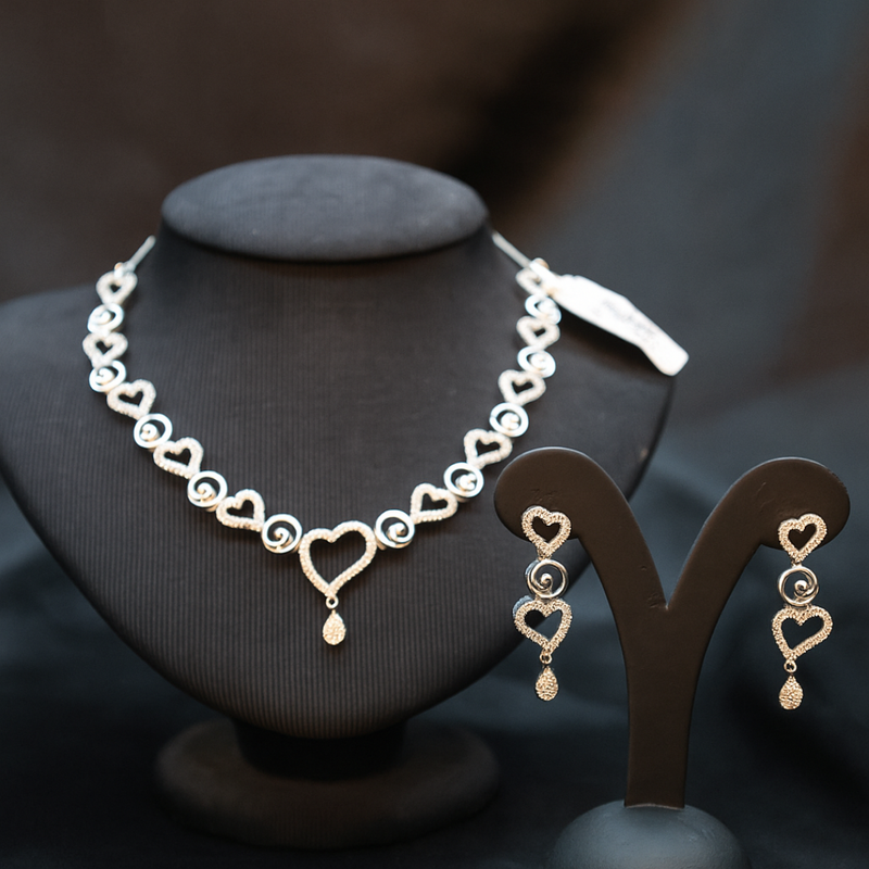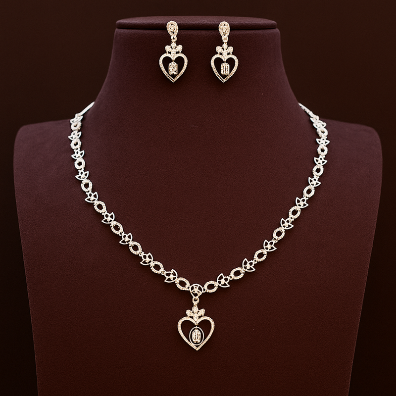 Heart Link AD Necklace Set | Romantic Silver-Plated Jewellery with Earrings