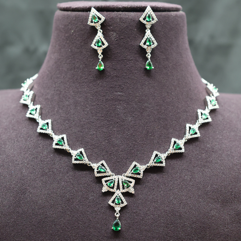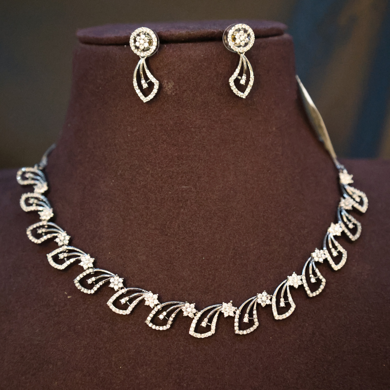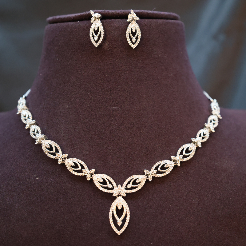 Leaf Motif AD Necklace Set | Silver-Plated Elegant Jewellery for Occasions