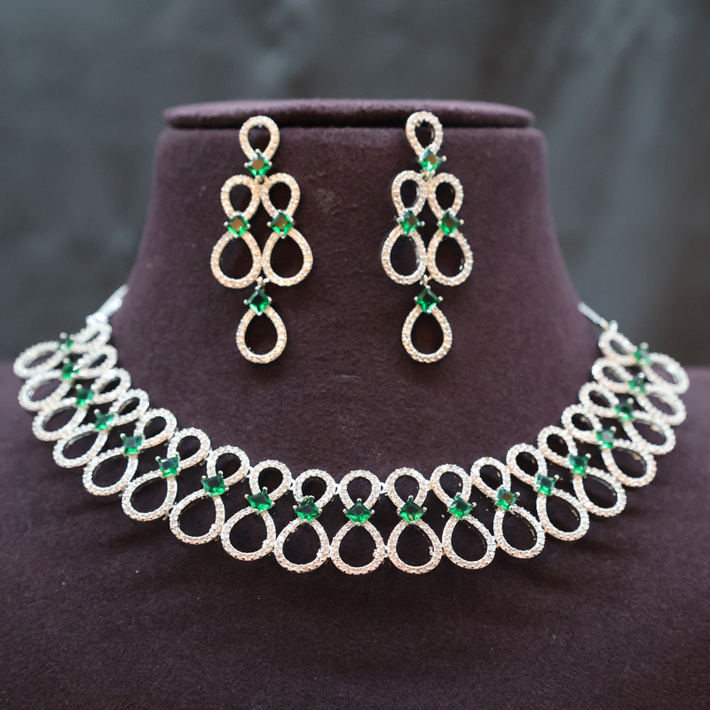 Green Infinity Loop AD Necklace | Silver-Plated Statement Party Jewellery