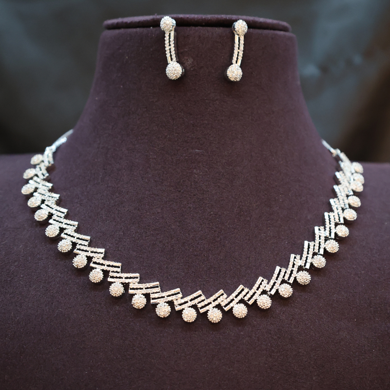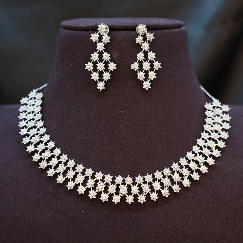 Star Cluster AD Necklace Set | Silver-Plated Sparkling Jewellery for Parties & Functions